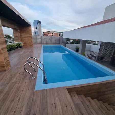 The 51 m² Brickell 5 Norte Apartamento 1 Dormitorio P5 Santa Cruz de La Sierra offers proximity to such tourist attractions as AMI Jardin de Infantes SRL, situated a mere 6 minutes' walk away. This apartment features a rooftop pool and a terrace overlooking the pool.